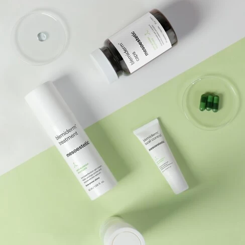 The line of household Acne-Peel System skin care products by Mesoestetic was specifically designed to complement the intensive treatment in cabin in a fully convenient and effective way.