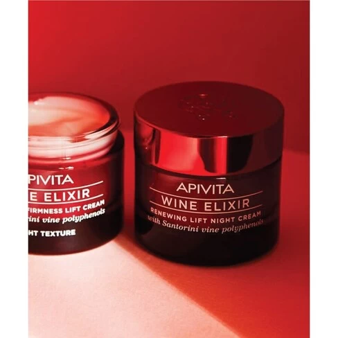 The Wine elixir night cream for all skin types features a firming and illuminating action.