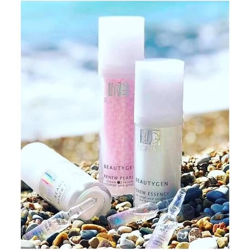 Beautygen renew essence improves skin firmness, redefines facial contours, improves complexion texture and strengthens skin barrier.