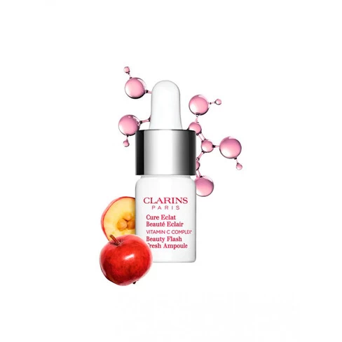 Beauty Flash Fresh Ampoule combines a 15% concentrated Vitamin C complex and a serum enriched with extracts of superfruits, acerola and rosehip.