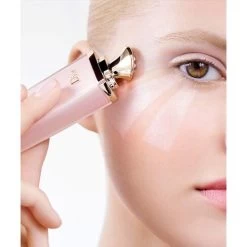Its new ergonomic applicator follows the eye contour, acting on crow’s feet and wrinkles between the eyebrows. In the golden corolla of refreshing power, eleven rotating stimulating micro-pearls of smoothing power ideally complement the effectiveness of the eye contour serum.