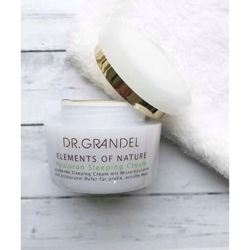 Elements of nature hyaluron sleeping cream smoothes and plumps the skin during the night, for a younger look in the morning.