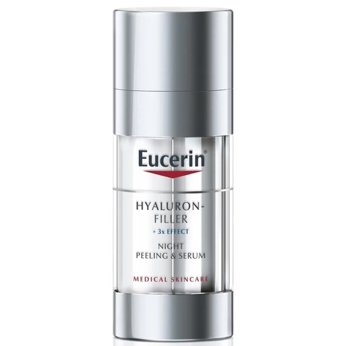 To exfoliate the skin and refine it’s texture; Eucerin developed the Hyaluron-filler 3x effect night peeling & serum.