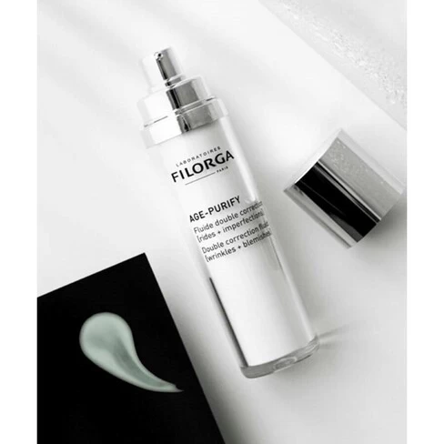 Age purify double correction fluid [wrinkles + blemishes] helps to mattify the complexion while protecting the skin from pollution and corrects wrinkles.