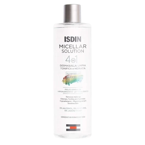 ISDIN’s 4-in-1 Micellar solution allows you to cleanse the skin from your face without compromising the skin barrier; preparing it for the application of the remaining products.