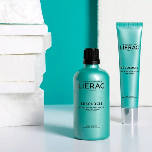 Sebologie keratolytic solution for blemish correction is the first step to stimulate cell renewal and to descale the pores and purify the skin.
