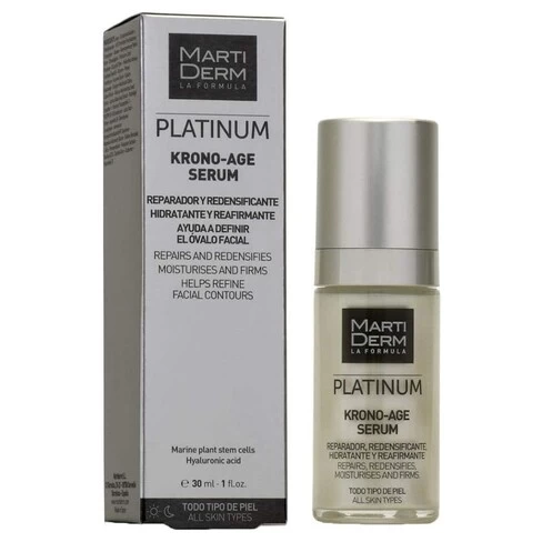 Krono-age, an anti-ageing, repairing and redensifying serum, that contains marine stem cells that protect and improve the dermo-epidermal junction, resulting in a restructuring effect on the skin, leaving it smooth and silky, with a pleasant feeling of freshness.