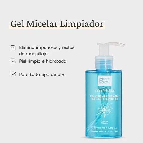 Martiderm Micellar cleasing gel – A cleansing micellar technology care with Edelweiss antioxidant and protective action of prebiotics.