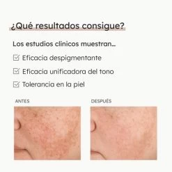 6 potent depigmenting active ingredients which act synergistically decreasing melanin’s synthesis: