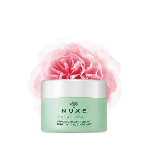 The Insta-masque purifying and smoothing mask combines the benefits of rose floral water with white clay to very gently purify the skin.