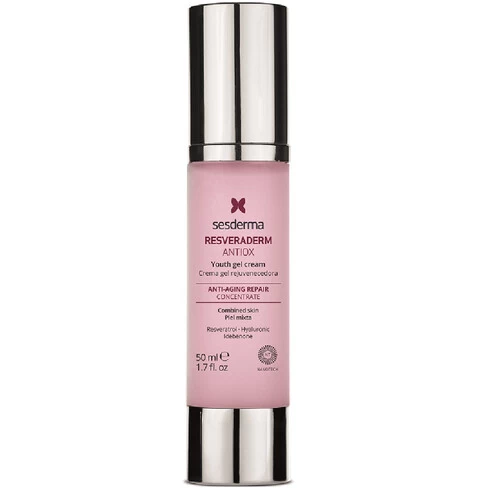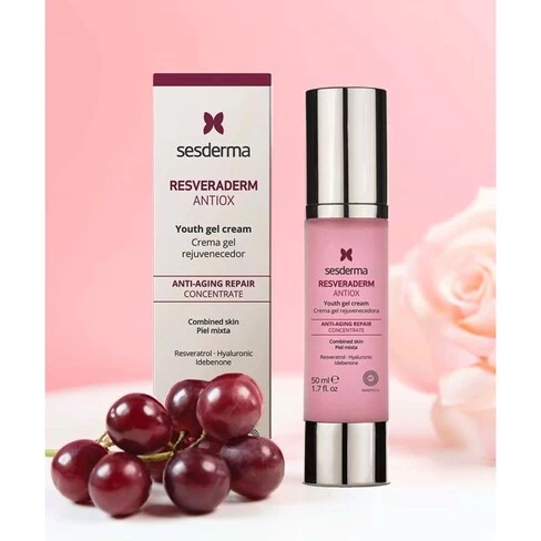 Resveraderm cream for combination skin has a powerful anti-aging cocktail with resveratrol, coenzyme Q10 and vitamin A, C and E.Â