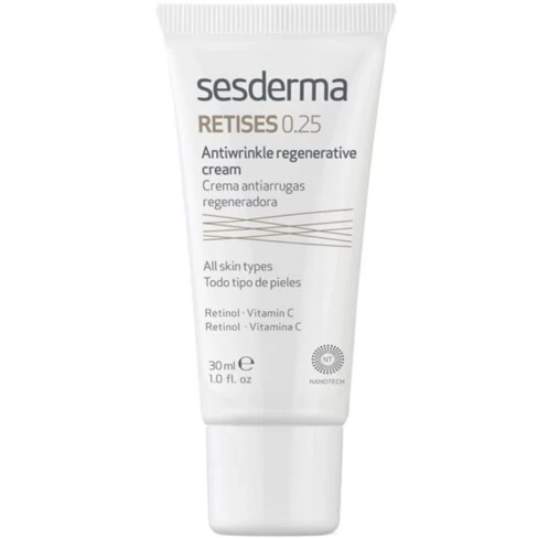 Retises 0,25%, has a perfect combination of pure Retinol 0.25% and vitamin C to 1%; to combat skin aging symptoms. The pure retinol is the most active form of vitamin A, one of the most effective active against wrinkles, needed to raise the collagen content and the natural regeneration of the epidermis cells. Repairs and protects the damage that our skin suffers over time. The antioxidant action of vitamin C provides brightness and evens skin tone.